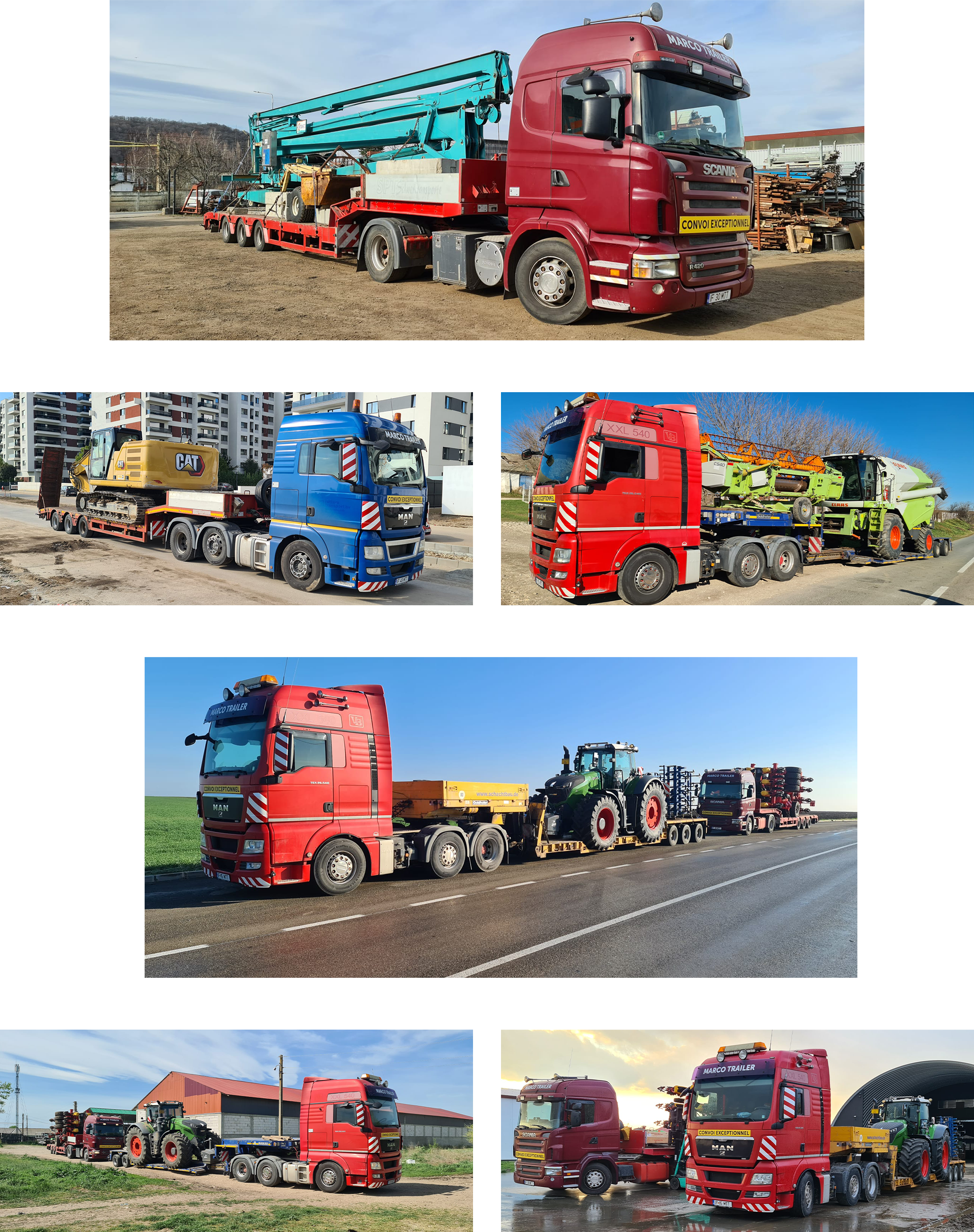 Oferim servicii de transport agabaritic oriunde în România, acoperind o gamă variată de mărfuri precum: utilaje agricole, excavatoare, stații de sortare, buldozere, motostivuitoare, confecții metalice, plus multe altele.